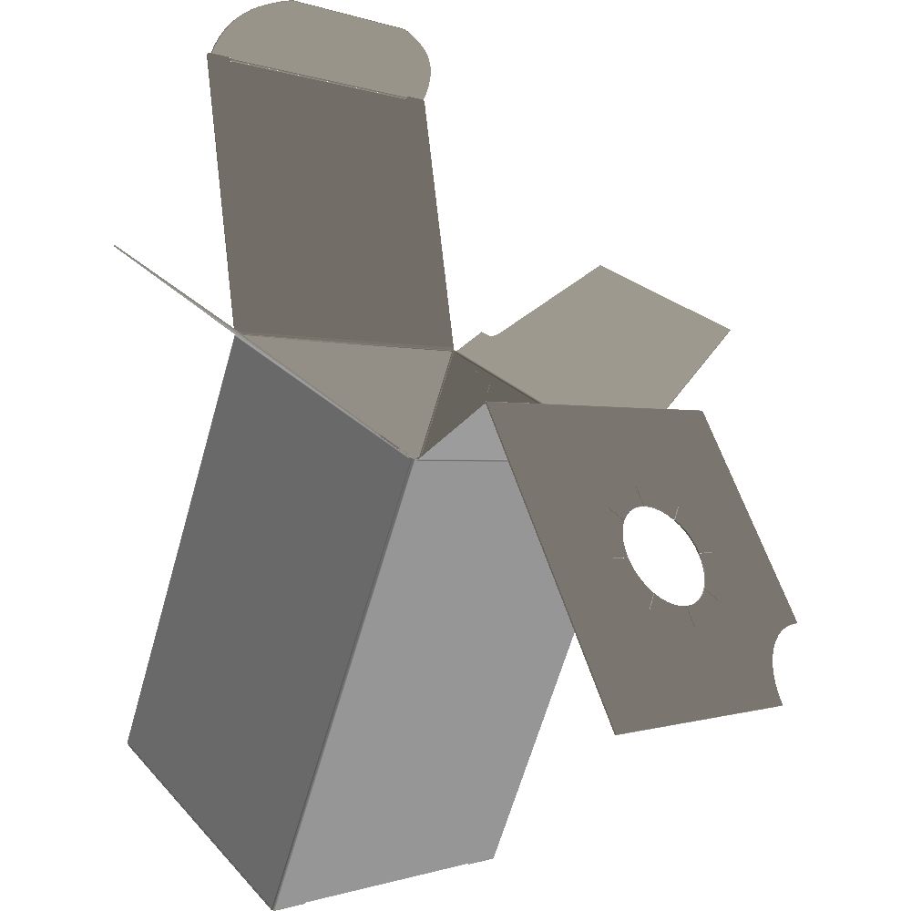 The challenge with this structure was to securely place a product in a box larger then needed to snugly fit the bottles. The client insisted on a larger box to secure more impact on the shelves. That meant more room for the bottles to move inside the box. So, they had to be restrained in place. The product placement in the box is done manually, by hand, so an extra flap was added to hold the bottles in place inside the box. It also allows for the bottle to be fitted into the securing flap and then to be inserted into the formed box.